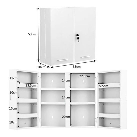 Armoire A Pharmacie Murale 2 Portes 11 Compartiments Serrure 2 Cles 53x53x20cm Acier Meuble A Pharmacie Armoire Medicaments Premiers Secours Salle De Bains Amazon Fr Hygiasne Et Soins Du Corps