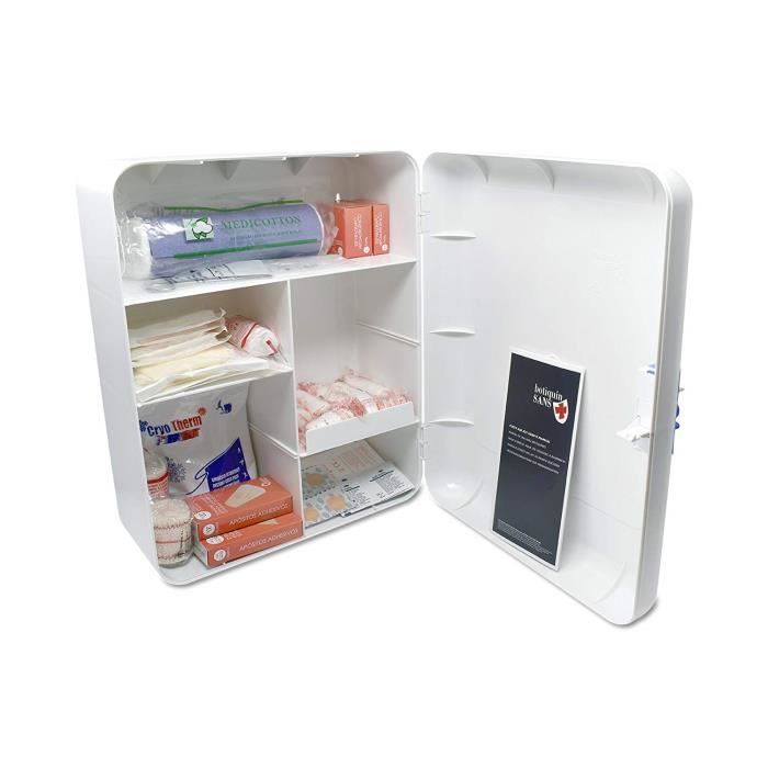 Botiquin Sans Armoire A Pharmacie De Premier Secours Grande Murale Avec 95 Produits Pack De Froid Paire De Ciseaux Et Pince A Echarde En Acier Inox Blanc 2 Vendeurs